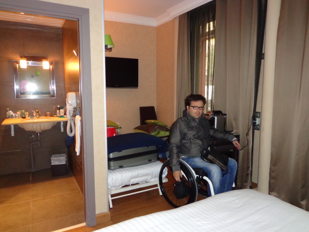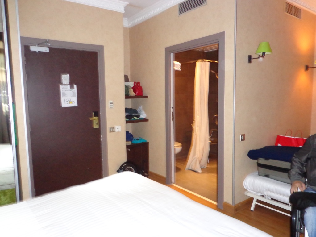 La habitación adaptada se encuentra en la planta baja muy cerca de recepción. La habitación es mediana, más bien tirando a pequeña con una cama de matrimonio y una cama supletoria.