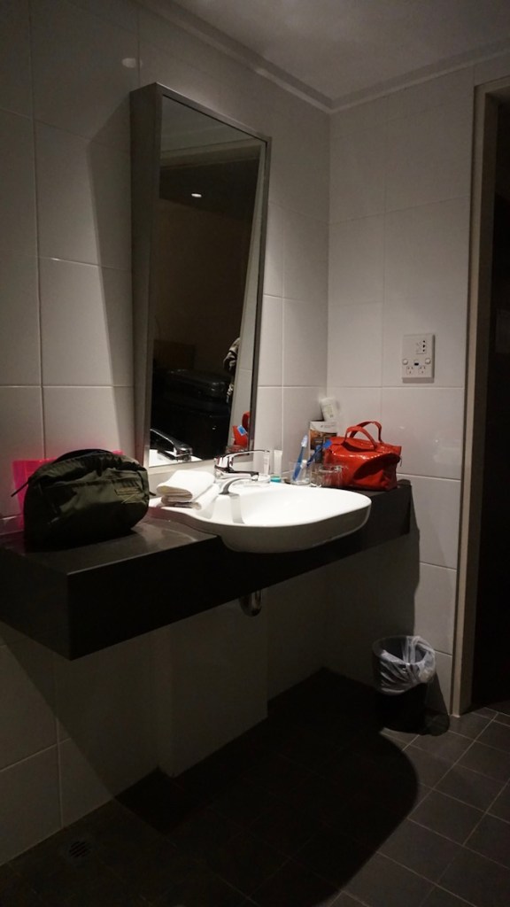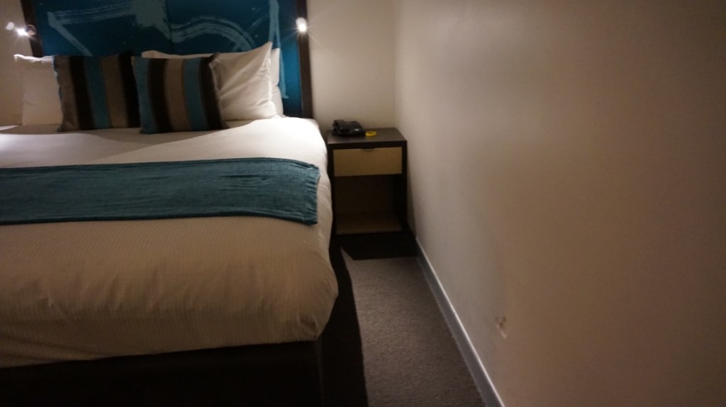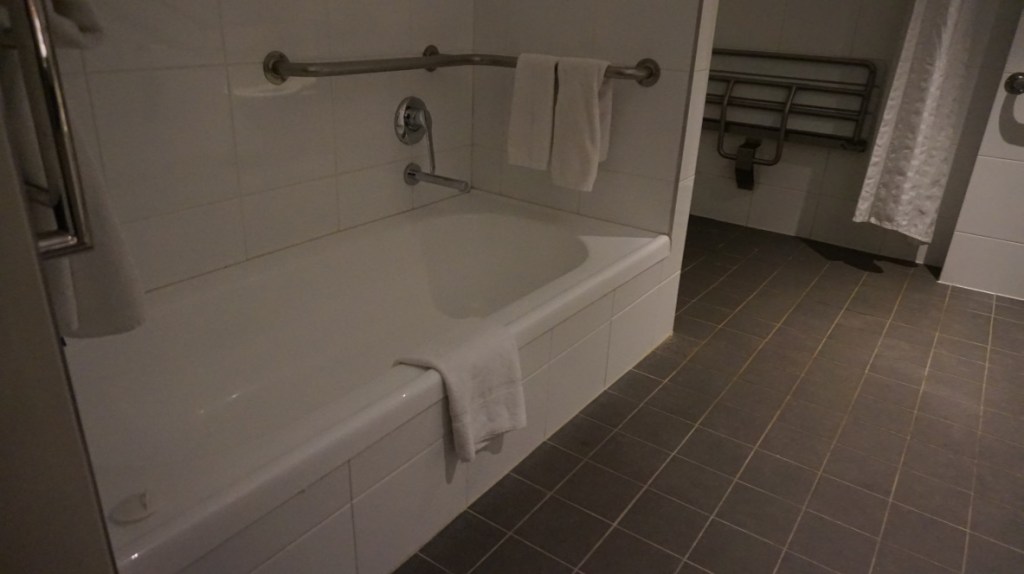 El Hotel Novotel Collins está situado en pleno centro de la ciudad de Melbourne y a escasos minutos de la famosa estación de tren (Flonders Railway Station). Es un hotel algo curioso ya que está en un mismo edificio que alberga un centro comercial ( tiendas clásicas, restaurantes…). Sus habitaciones, por lo menos la adaptada da a la mitad del centro comercial usando un gran lucero interno para tener luz natural dentro de la habitación. Desde el punto de vista de la adaptación tengo que comentar que se entra mediante un ascensor ubicado a pie de calle. Se sube a la cuarta planta para llegar al lobby y poder hacer el check -In. En esta misma planta se encuentra el restaurante, la zona de bar y desayuno del hotel. Todo el hotel está enmoquetado con una altura de pelo diferente dependiendo de la zona, la planta séptima donde está la habitacion adaptada tiene un pelo un poco alto por ejemplo para mi gusto. La habitacion en cambio, tiene un enmoquetado con pelo bajo y fácil de andar en silla