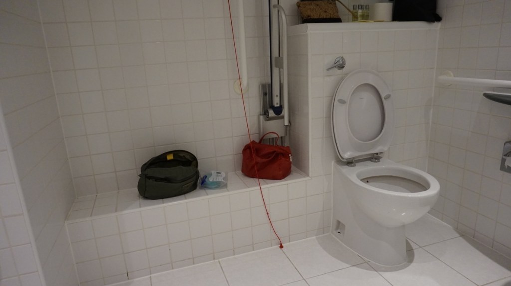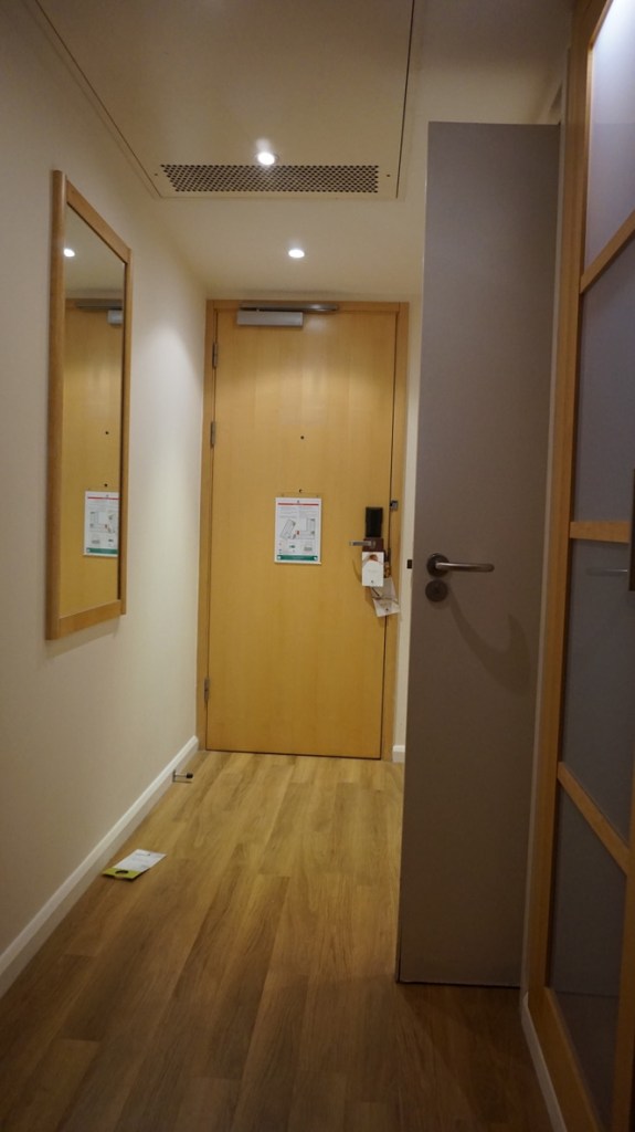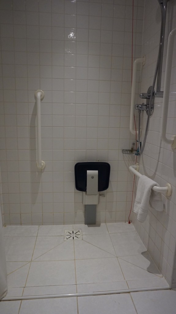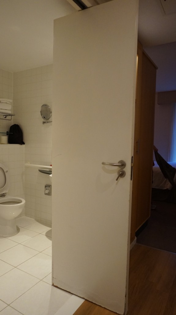 En relación a la accesibilidad de la habitación, la nuestra se encontraba en la segunda planta, el acceso a ella es mediante un pasillo con moqueta con pelo un poco alto para la silla. La habitación en general está muy bien, la zona del dormitorio no es muy grande pero suficiente para poder moverse.