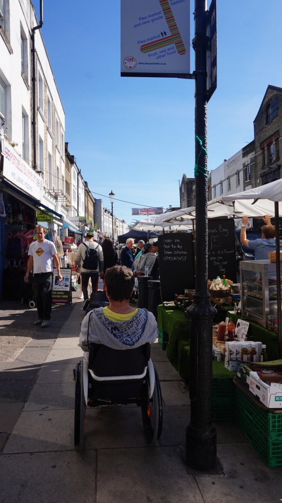 Este mercado es uno de mis favoritos, ya lo conocía de una visita rápida anterior pero esta vez nos perdimos por sus diferente mercados y callejuelas que son alucinantes: ropa, música, antigüedades… creo que se puede encontrar de todo y de topo tipo de época. Hay zonas que no son muy accesibles ya que el pavimento es irregular pero con la handbike sin problemas. La gran mayoría está bien para poder andar con la silla sin problemas.