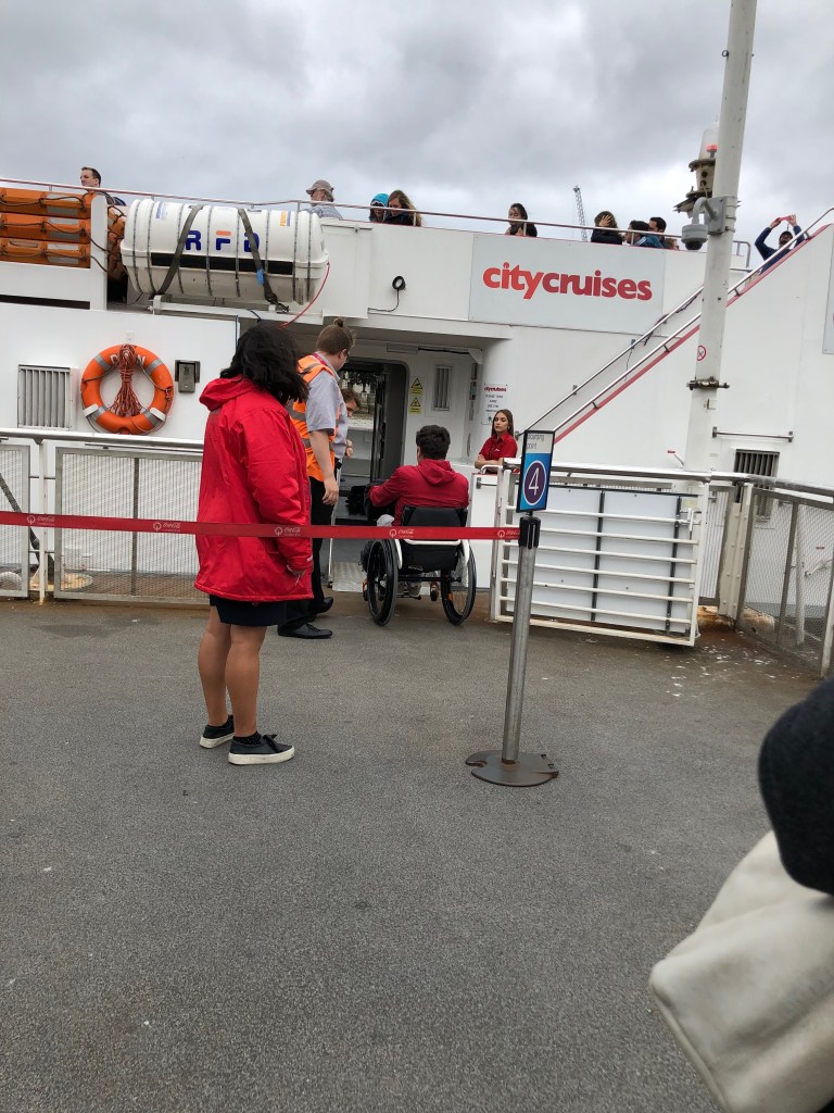 La misma compañía de Autobús Big Bus London tiene un pack para subirte a un barco llegando en su última parada a Greenwich con la compañía CityCruises. Como ayuda, el ticket se puede comprar online o justo en frente de la noria LondonEye que es donde se coge el barco, no hay necesidad de decir que vas en silla. El funcionamiento es idéntico al Bus, te bajas y te subes donde quieres sabiendo que la última parada es en Greenwich. El Barco está perfectamente adaptado, la tripulación te ayuda a entrar y salir del mismo sin ningún problema. De camino a Greenwich sacamos fotos únicas de la ciudad de Londres desde el barco, pasamos por debajo de la Torre de Londres y por último después de unos 40 minutos llegamos a Greenwich.