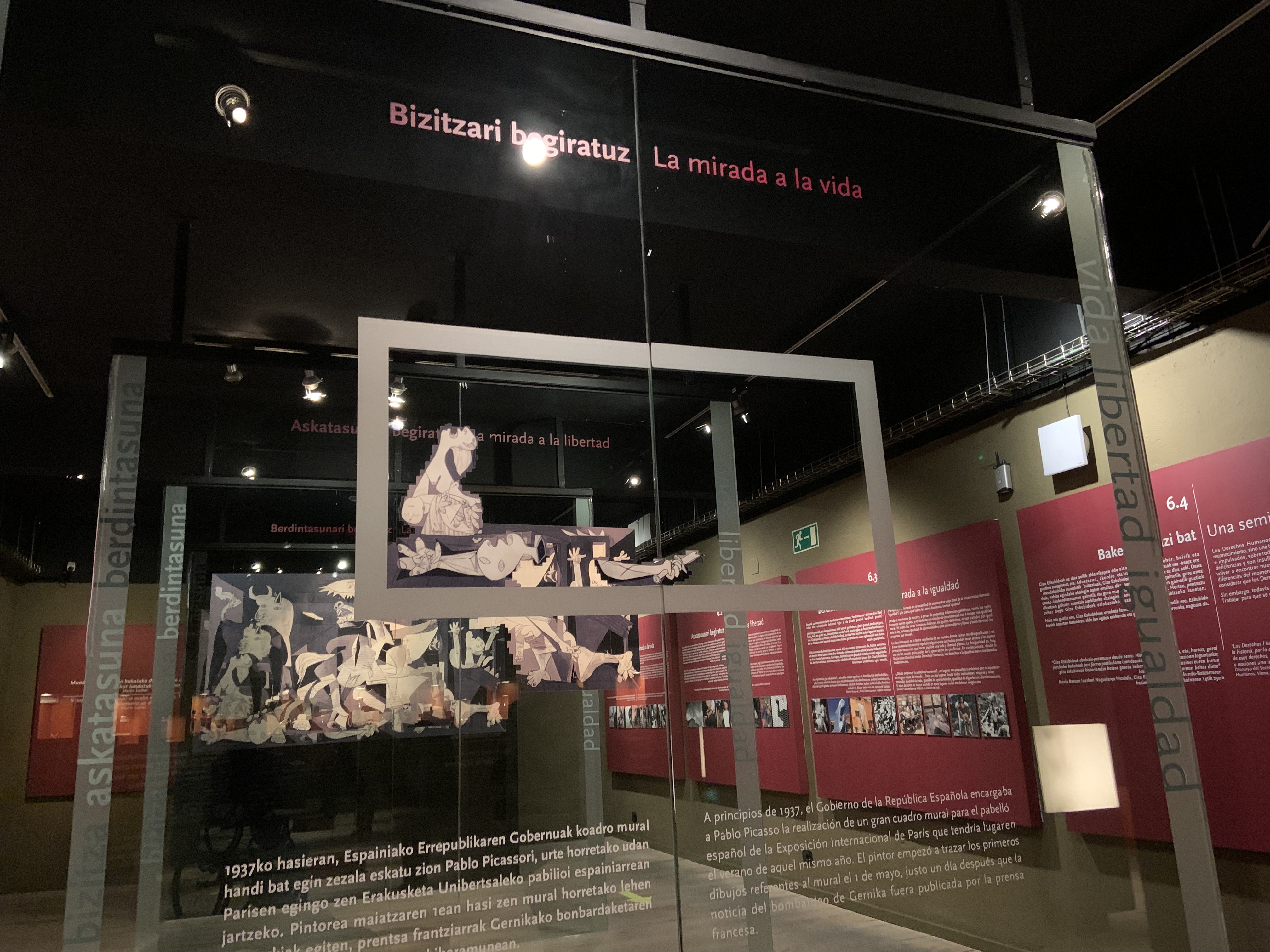 - Planta tercera: Planta dedicada a la exposición permanente, explicación del cuadro El Guernica y vídeo muy emotivo de testigos que vivieron el bombardeo, que hace entender lo que Picasso quiso plasmar en su cuadro hoy en día expuesto en el Reina Sofia de Madrid.