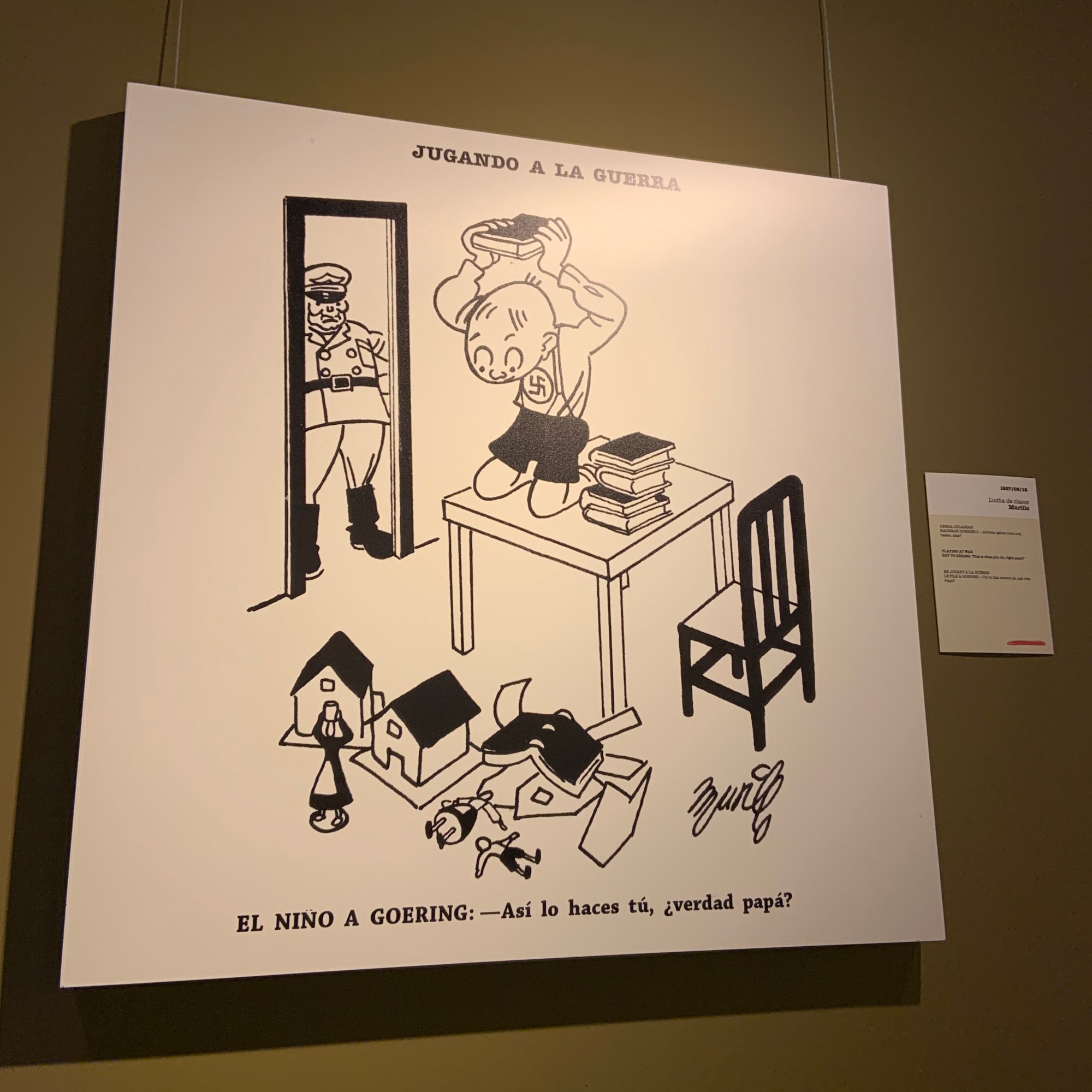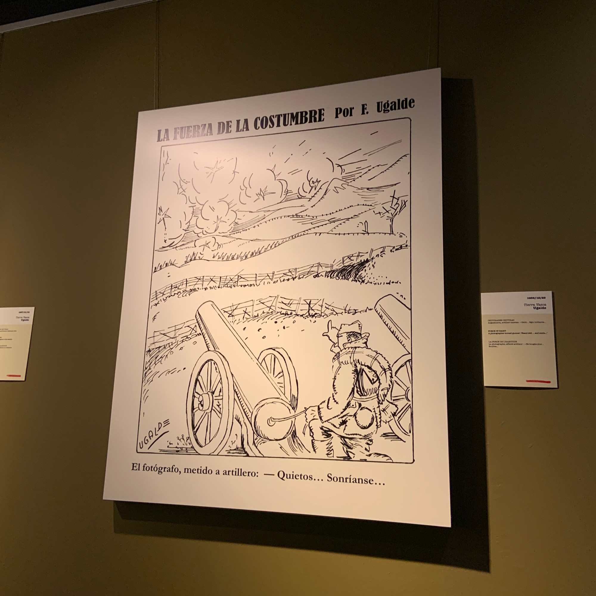 - Planta baja: dedicado a la exposiciones itinerantes, en nuestros caso vimos la exposición Viñetas para el recuerdo Viñetas publicadas en los periódicos de Bilbao durante la guerra en Euskadi (1936-37)