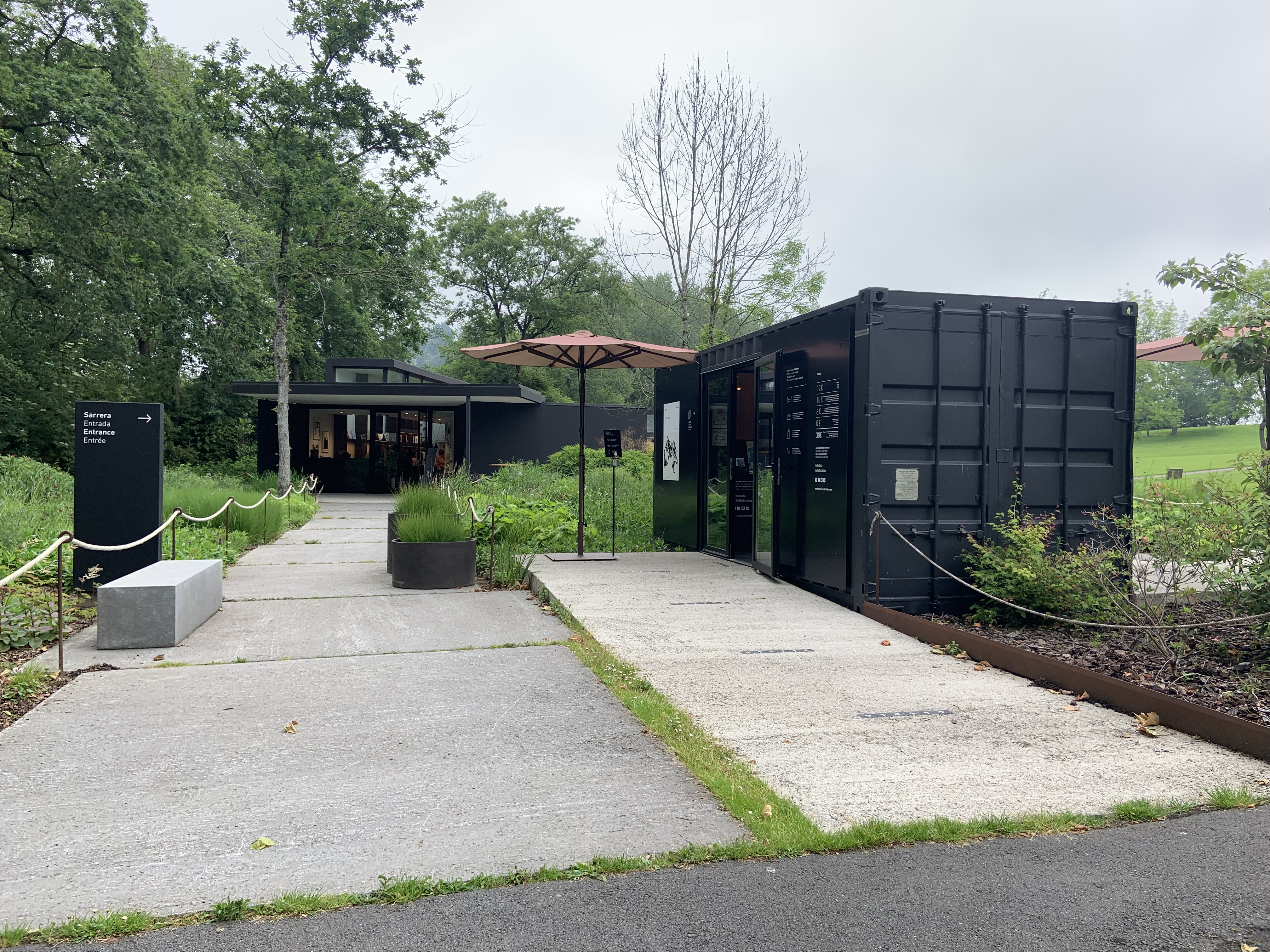 - La zona baja donde esta el Parking con ( 3 plazas para PMR) , los baños, la cafetería, la tienda y cómo no la entrada al museo.