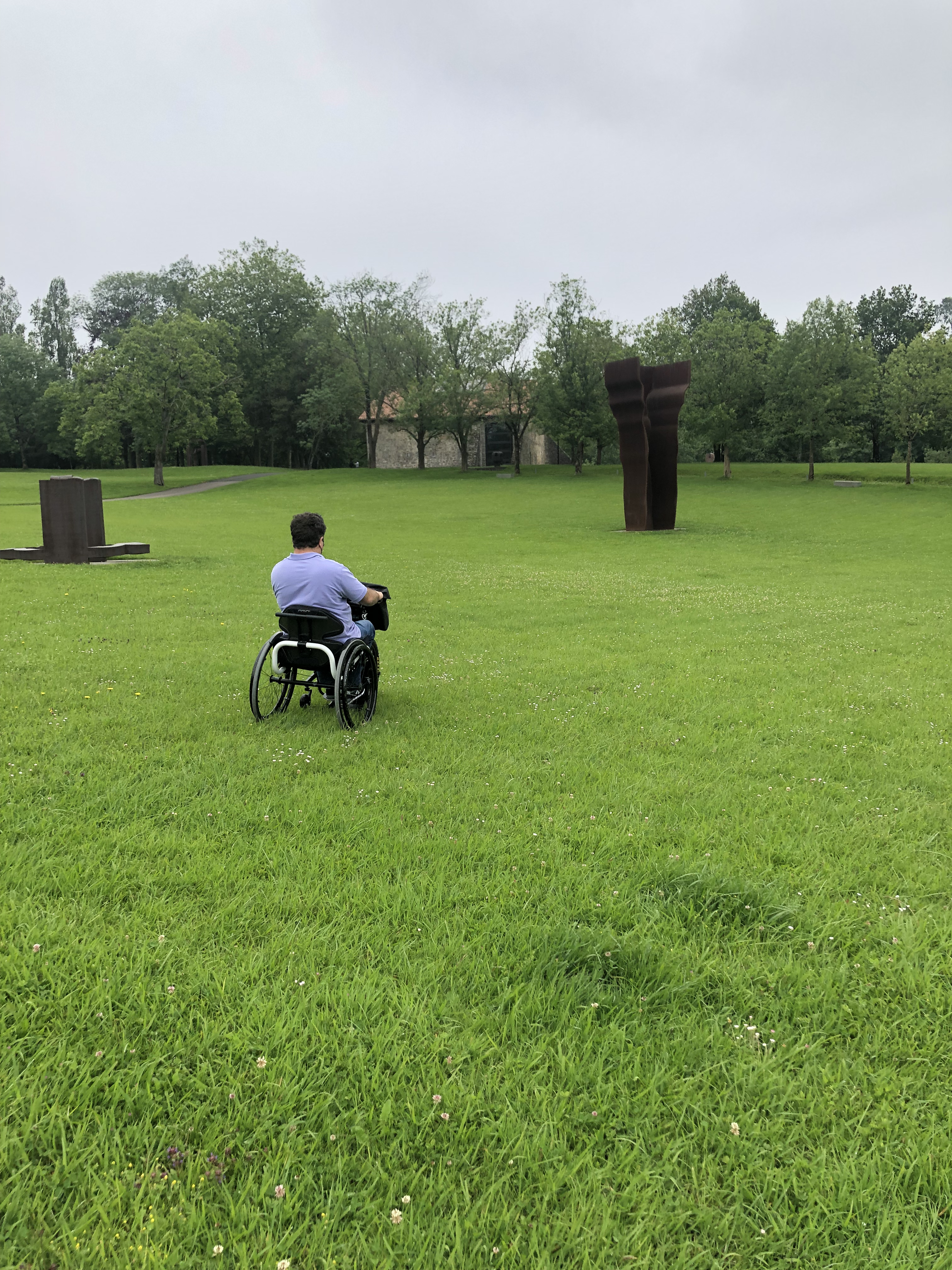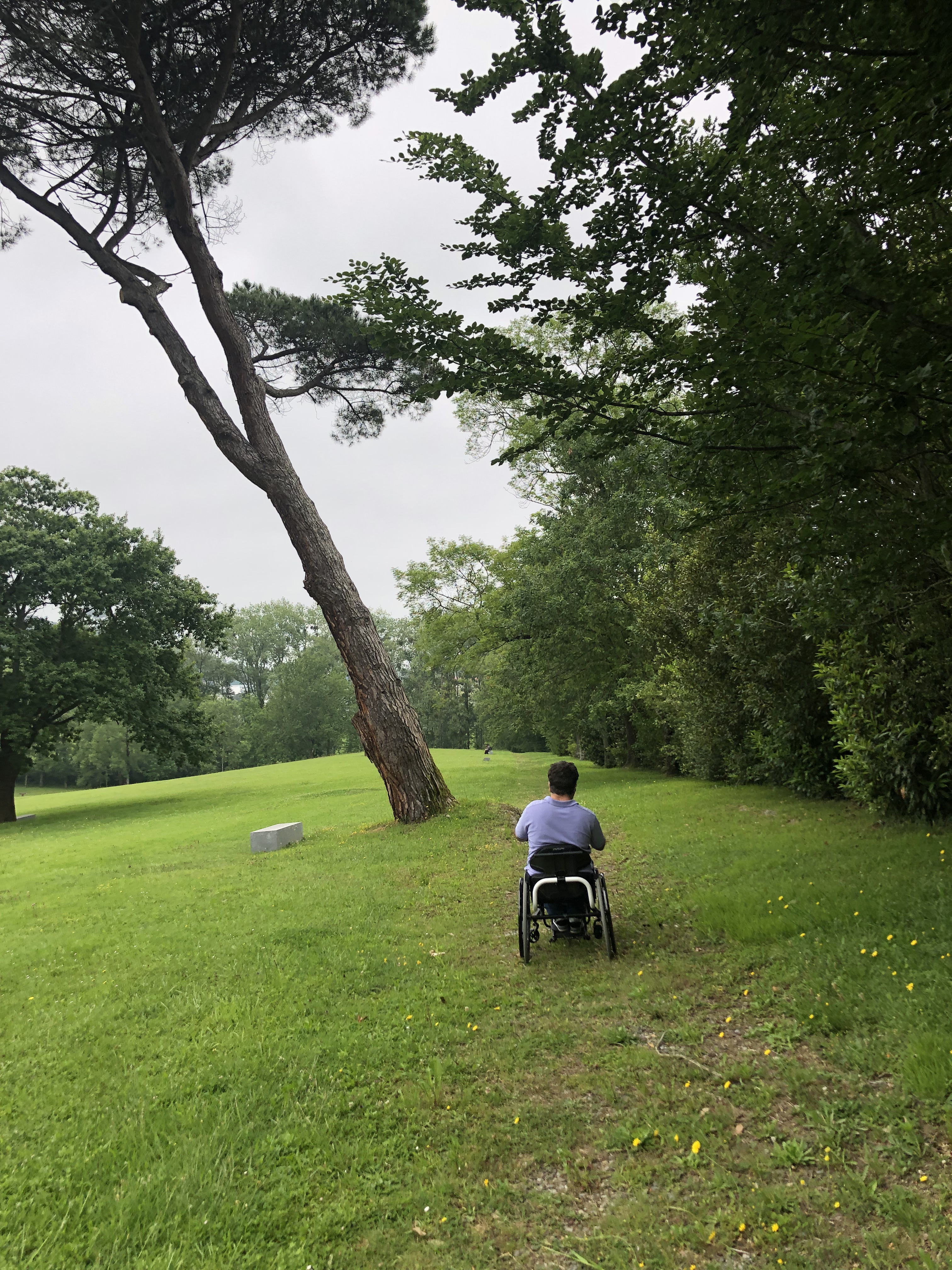 El «bosque» está rodeado por diferentes caminos, senderos. Los principales son caminos asfaltado y para andar con una silla son perfectos, luego existen senderos de piedra, gravilla y de hierba que se pude pisar para llegar a la obras y estos ya no son tan accesibles, lo ideal para llegar a las obras es llevar alguna ayuda tipo hand-bine eléctrica o rueda delantera que nos eleve para ir más cómodos.