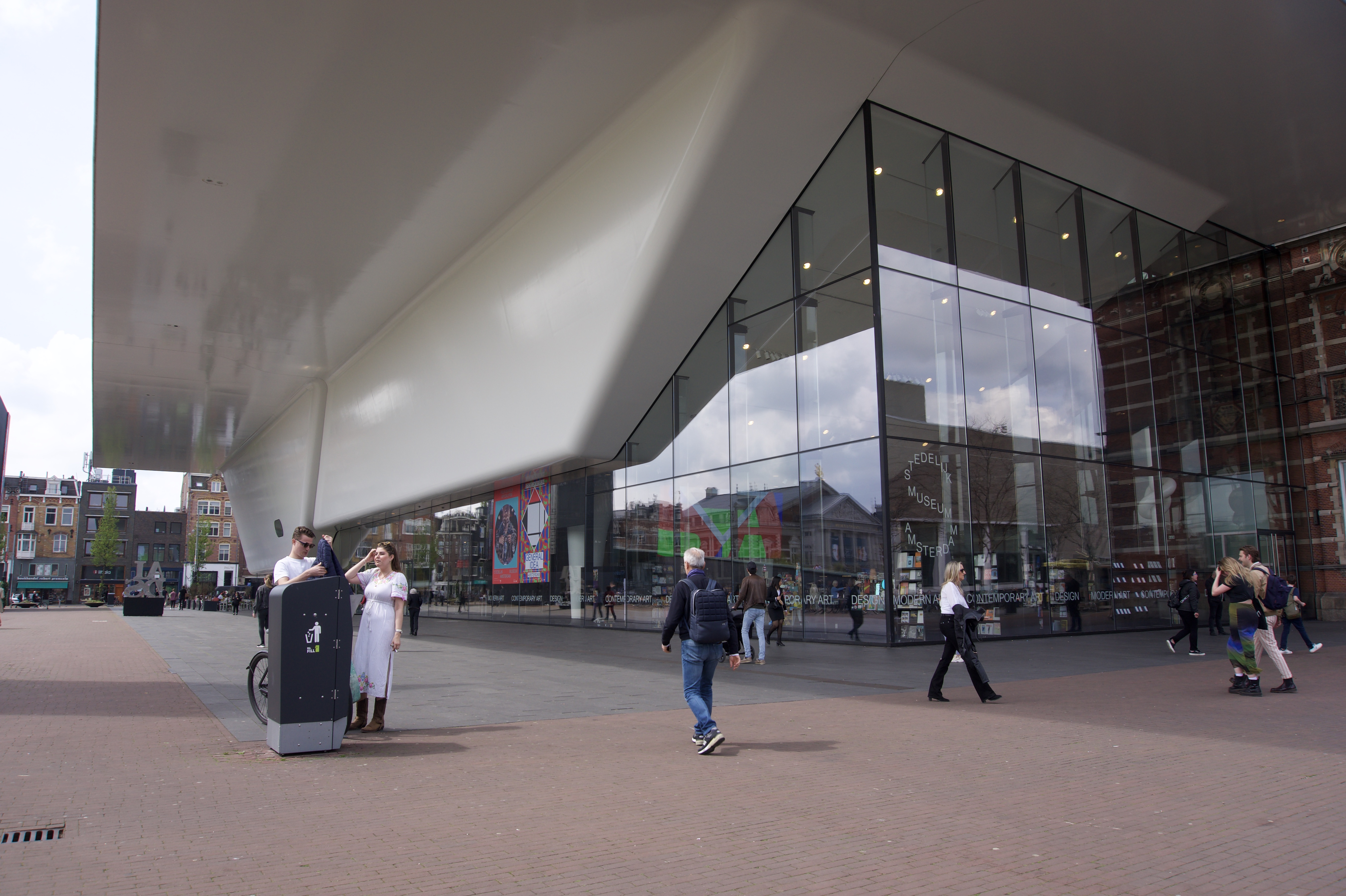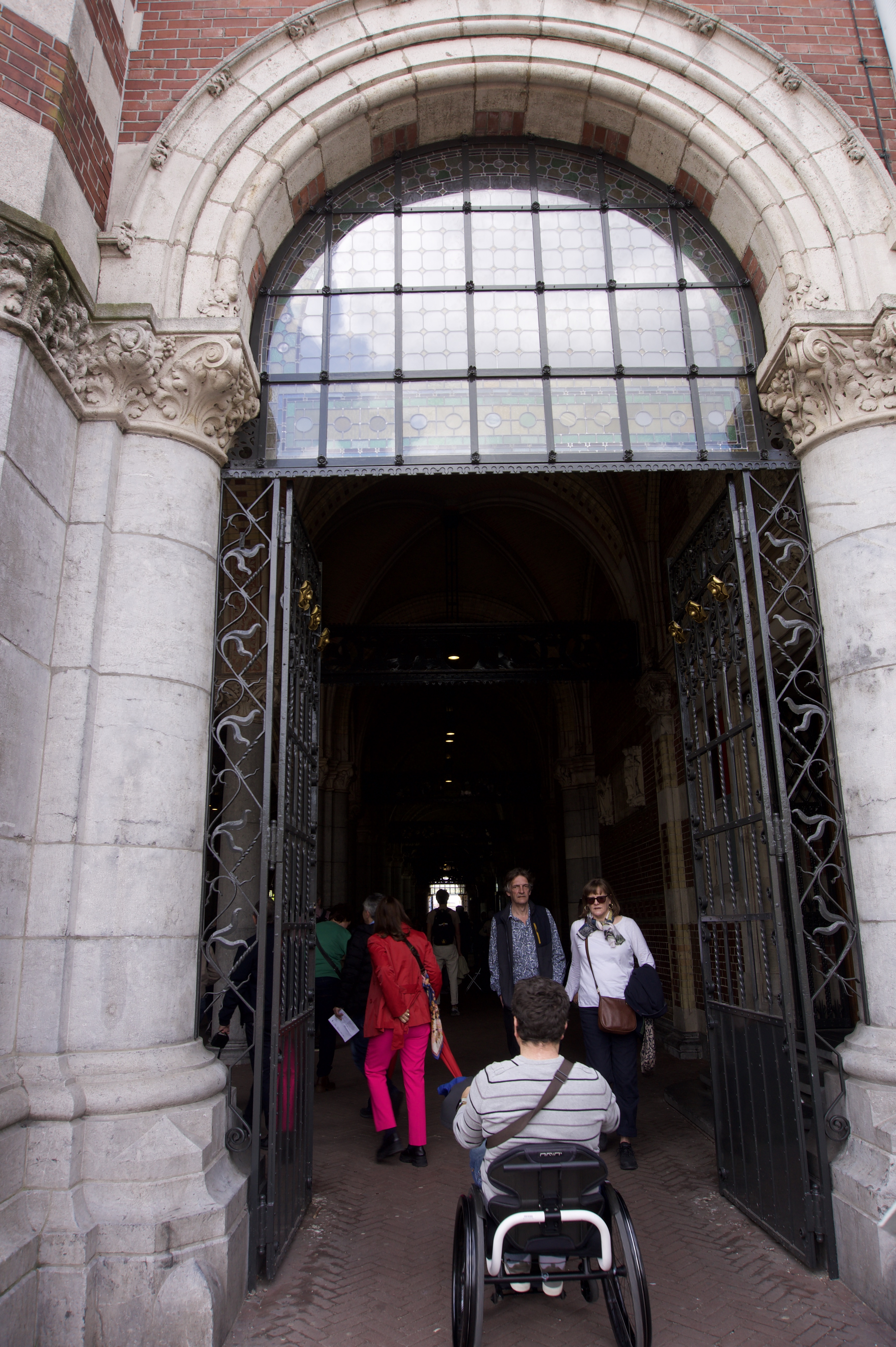 - Museumplein o Plaza de los museos, Situado en el Barrio de los museos es uno de los sitios más visitado por los turistas, en él podéis encontrar varios museos: Van Gogh, Rijkmuseum, Moco Museum, Diamant Museum y el Stadelijk Museum ( arte moderno). Nosotros en esta zona solo entramos al de Van Gogh ya que era el que más nos llamaba la atención. También entramos a la cafetería del Stadelijk Museum ya que comparte baño con el museo para tomar algo y aprovechar su baño adaptado para sondarme, deciros que el de Van Gogh también tiene baños adaptados y perfecto para moverse en silla. Para llegar a la zona de Museumplein desde el centro lo más cómodo es el Tranvía con muchas rutas que te dejan cerca.