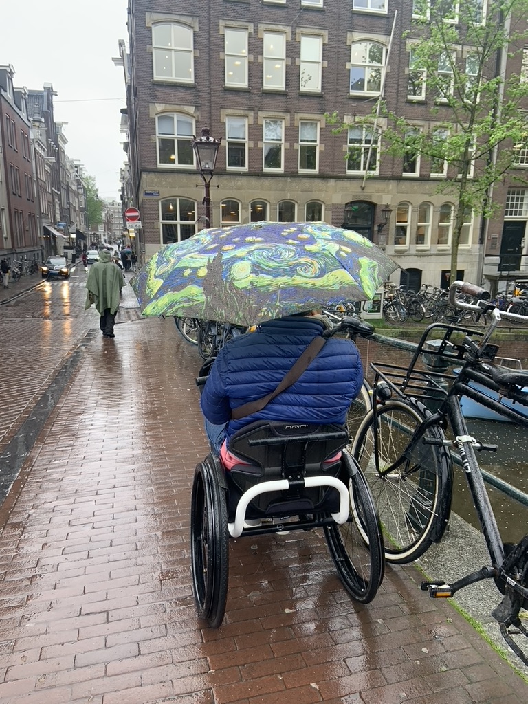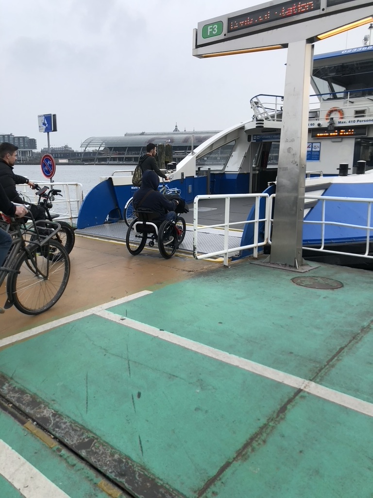 Como nos sucedió en nuestra última salida hace unos años a Bruselas, sabíamos que nuestra visita a Amsterdam no iba a ser fácil ya que la parte más antigua de la ciudad de Amsterdam hay zonas complicadas para la silla. Sus zonas más bonitas y antiguas están llenas de adoquines y aceras estrechas no muy accesibles (recomiendo Hand-bike eléctrica o similar), los comercios y restaurante de la zona antigua en general siempre tienen escaleras en su acceso. Saliendo de la zona antigua la cosa va mejorando y puedes encontrar restaurantes y comercios accesibles. Por lo que nos informamos antes de visitar la ciudad se está haciendo un gran esfuerzo por modernizarse y hacer de ella una ciudad mucho más accesible. Si vais a pernoctar en Amsterdam recomiendo alojaros en un hotel cerca de la Estación Central ya que desde allí salen Trenes ,Tranvía, Metro y Autobuses para moveros tanto dentro como fuera de la ciudad. Nosotros nos hospedamos en el NH Collection Barbizone. En la zona de hoteles lo detallo. Comentaros que Amsterdam es la ciudad de las bicis por excelencia y la verdad que esos caminos están muy bien para la silla, mejor que muchas aceras la verdad 🤣 yo me metí un par de veces por las vías de bici y ya os podéis imaginar con mi Hand-bike eléctrica …una gozada!!. Como anécdota comentaros que las bicis tienen prioridad sobre los peatones en los pasos de cebras.