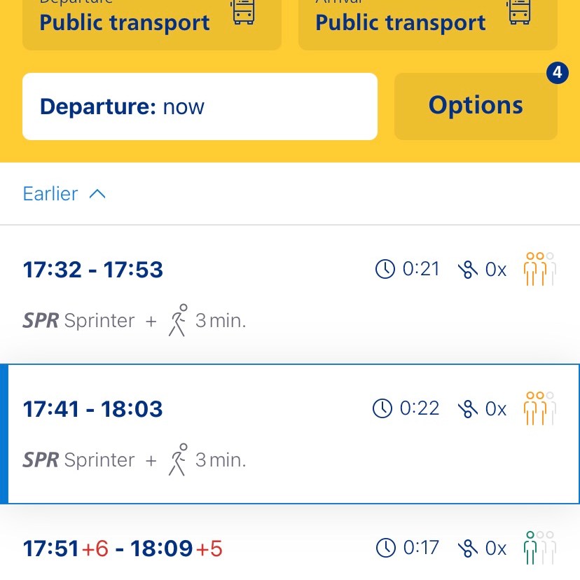 - Si llegáis a Amsterdam desde el aeropuerto Schiphol la mejor forma para llegar al centro para no pagar una pasta en taxi adaptado es a través del tren. Al principio leí en varios sitios que había que avisar con antelación para recibir ayuda para poder subir al tren pero después de hacer la consulta a la empresa que lo gestiona NS me explicaron que solo necesitáis ayuda si no podéis subir un pequeño escalón de entre 5 y 8 cm que hay a la entrada, ¡¡ojo!! existe varios tipos de trenes, tenéis que viajar en los SPR Sprinter y no tendréis ningún problema si como os decía podéis salvar ese pequeño escalón, en caso contrario deberéis solicitar la ayuda con una hora de antelación. Existen otro tipo de trenes, llamados Intercity direct que sí necesitan ayuda al ser antiguos ( varios escalones) aunque me he enterado que los están empezando a cambiar. La mejor forma de saber esto que os cuento es que os bajéis la App de NS y en ella podéis ver horarios, tipo de tren con su horario, aplicar filtros de accesibilidad y ver si es directo o con transbordo. ¡ah! y si tenéis que solicitar ayuda también a través de la App es posible.