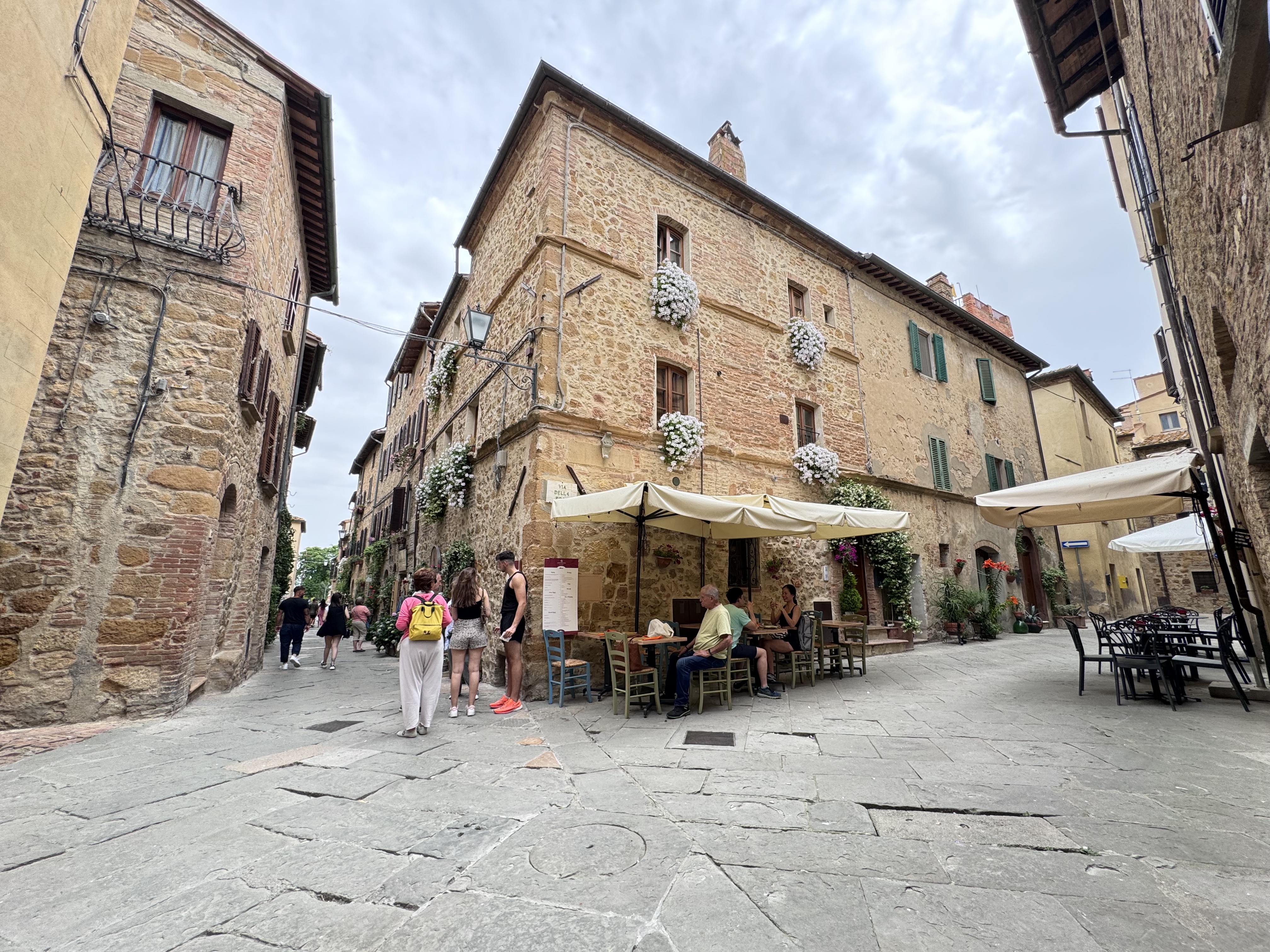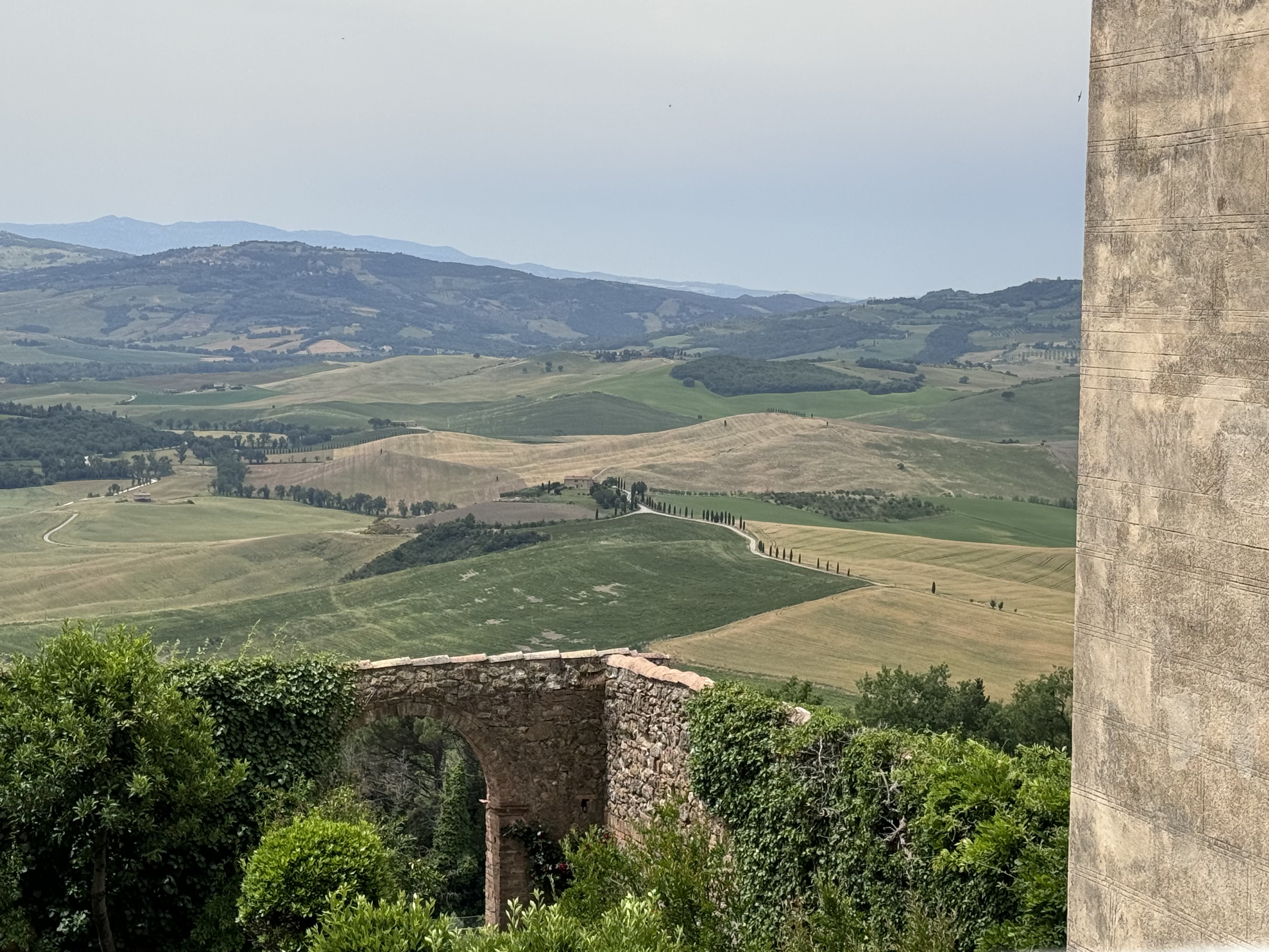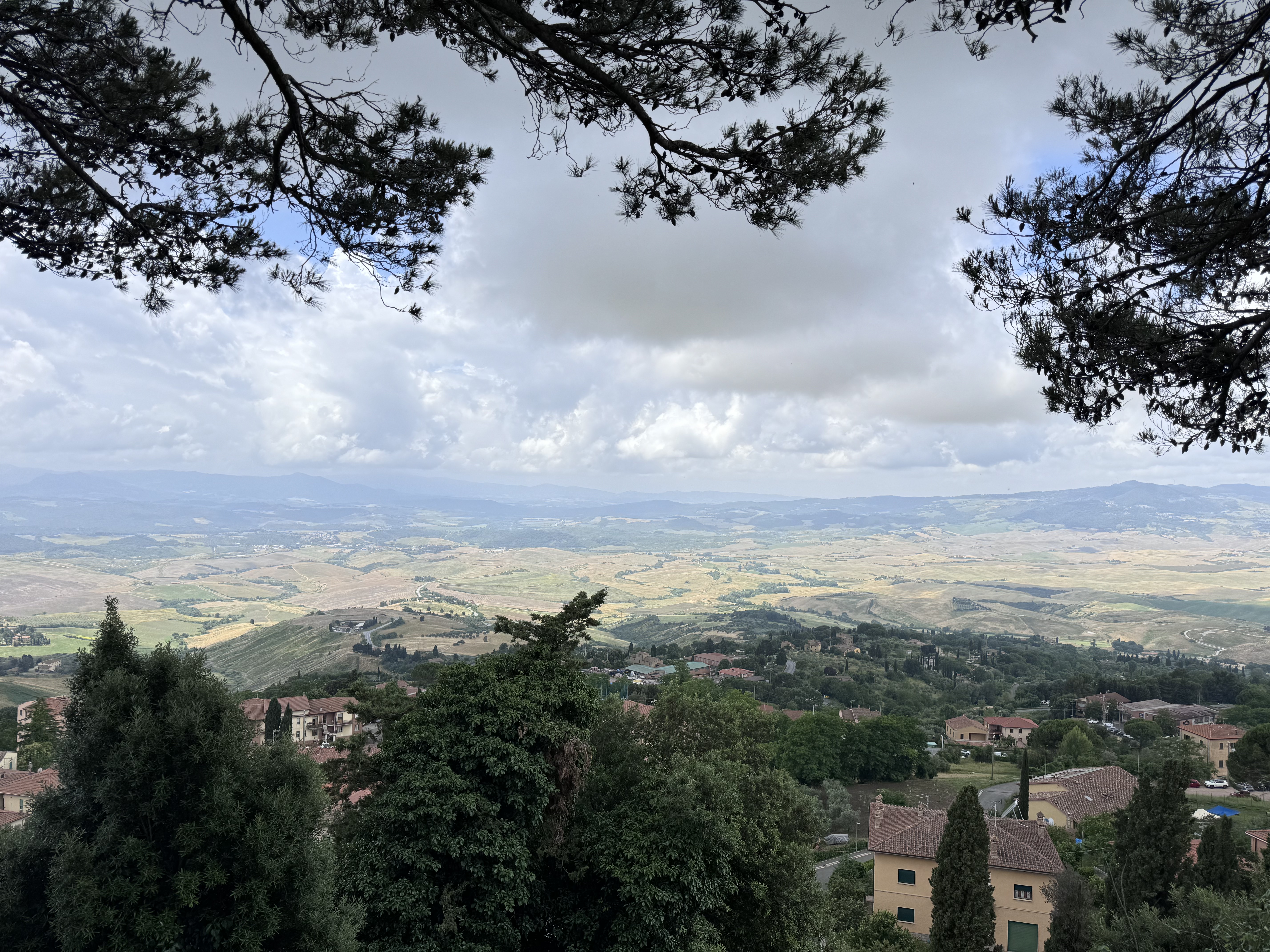 - Este era otra de nuestra vistas imprescindibles, perderse por el valle de Orcia, quizas a muchos os sonará esta zona ya que es donde se rodaron muchas partes de la película de Gladiator. La idea era perderse por allí y acabar visitando el pueblo de Pienza. Pienza es un pueblo muy recomendable, es bastante fácil de rodar con la silla, justo en la entrada hay algunos parking de PMR que casualidad uno de ellos estaba vacío y no tuvimos que ir al Parking más alejado. En Pienza aprovechamos para visitar el Palazzo Piccolomini, muy recomendable su visita guiada gratuita para PMR, totalmente adaptado incluso con baño y ascensor. Desde sus jardines hay fotos muy muy chulas al valle.