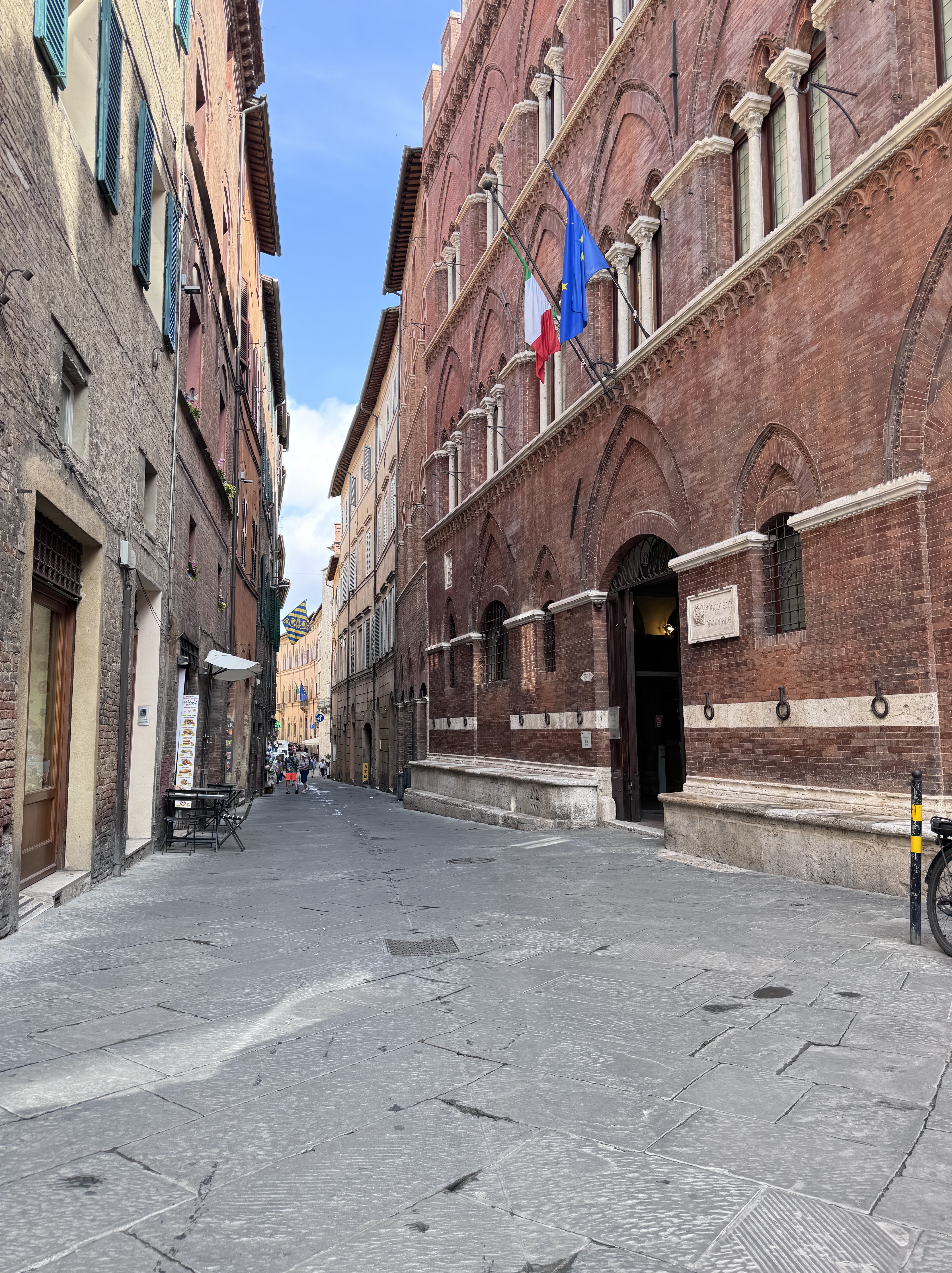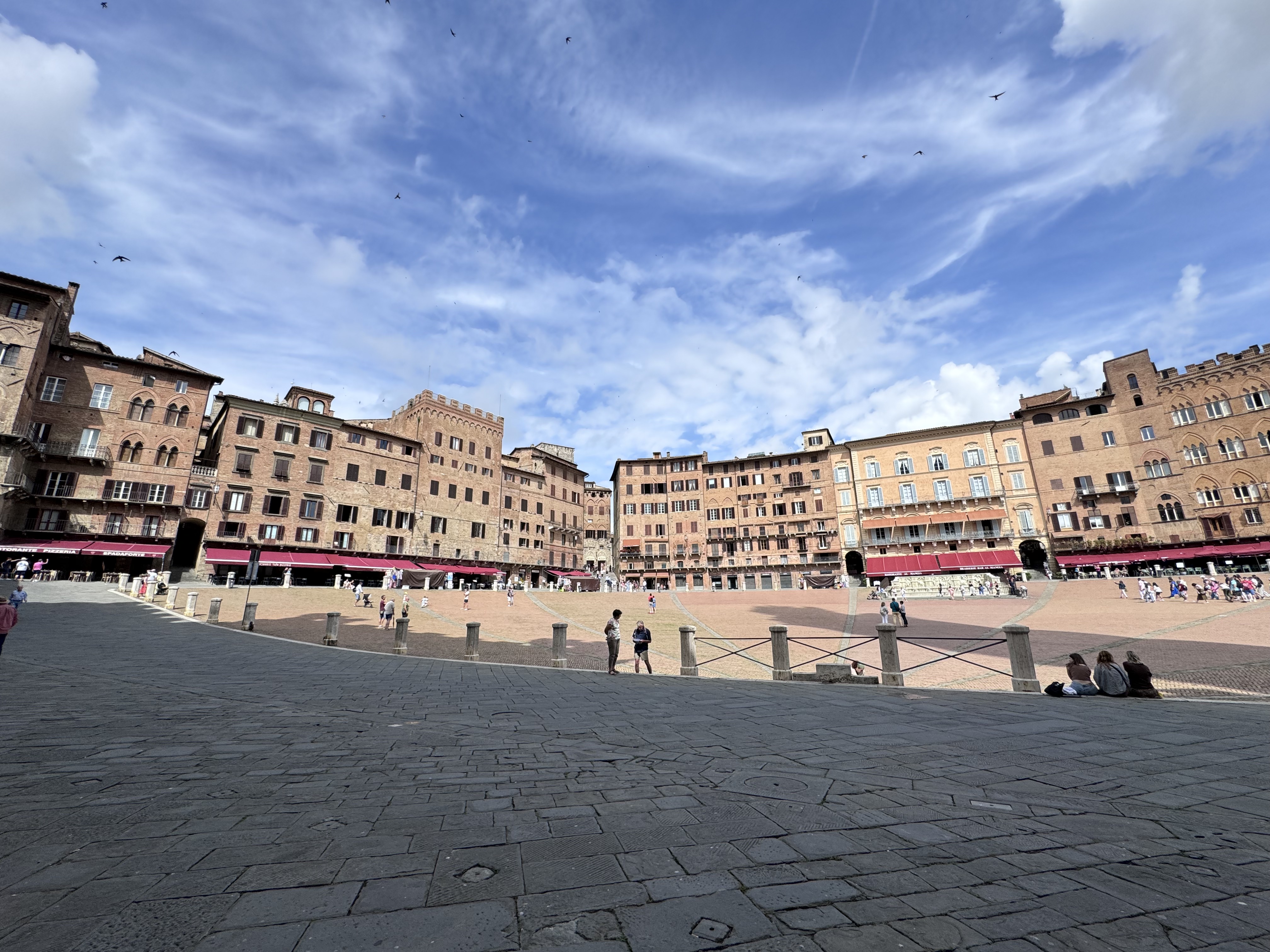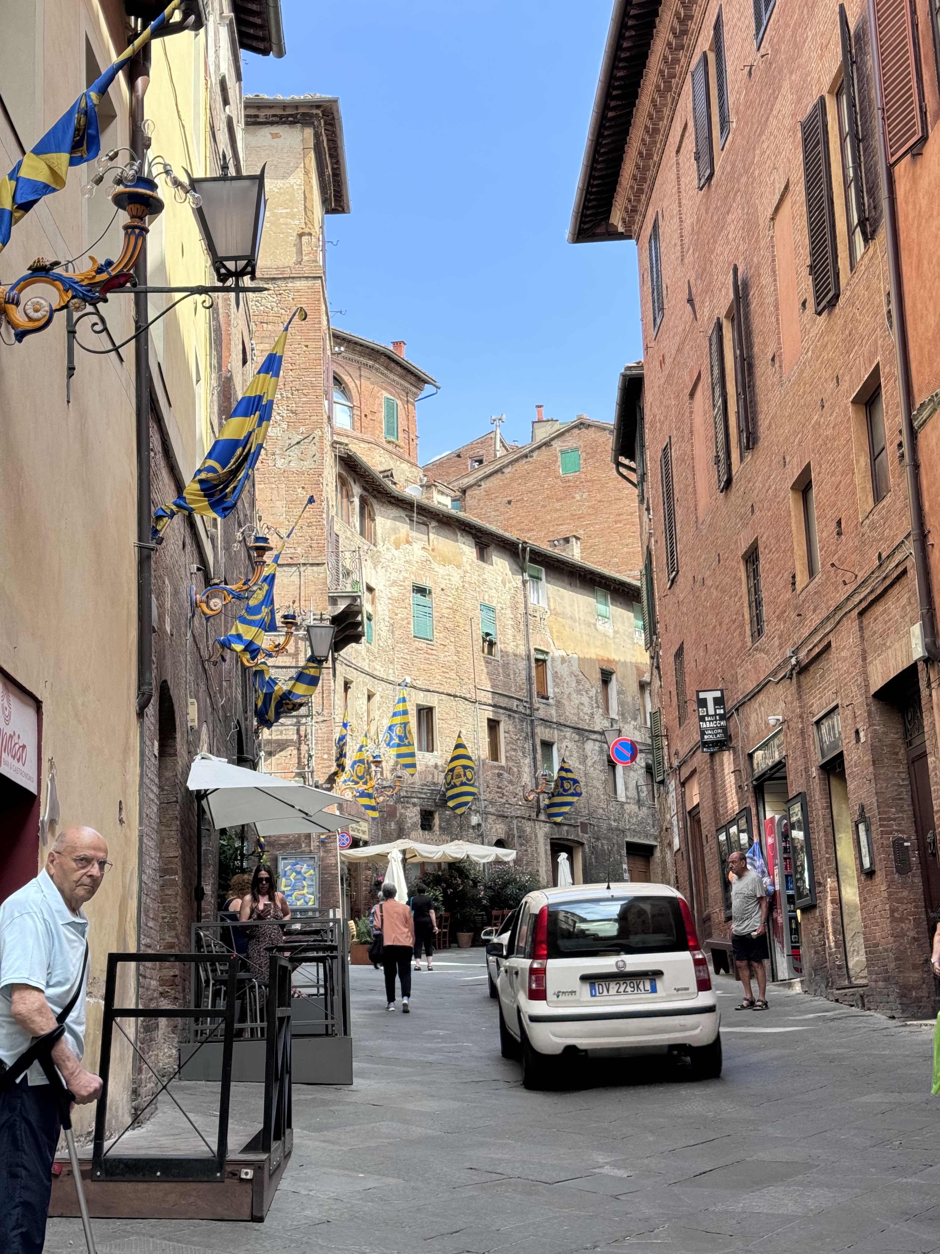 - Una de las ciudades más conocidas de la Toscana quizás quitando Florencia y Pisa seguramente se encuentra Siena. Hasta conocerla siempre pensaba en el pigmento (color) Siena ese rojizo muy especial y en la famosas carreras de caballos en su plaza….¡cosas mías! Bueno una vez en la Toscana hay que visitar Siena. Aparcamos en el parking que está en una de las entradas de la ciudad por el Sur, ( Parking Il Campo). En diez minutos caminado estáis en el centro ¡ojo! Siena es una ciudad con muchas cuestas, como no os dejen en su centro las cuestas que tiene esta ciudad son bien fuertes, el pavimento son adoquines pero son buenos para rodar. En mi caso con la hand-bike eléctrica fue llevadero, en algunas cuestas mi mujer tenía que ayudarme empujando. Básicamente pasamos una mañana y visitamos sus famosos lugares, el Duomo, sus calles y como no sus famosa plaza Piazza del Campo, mundialmente conocida por su carreras de caballos medievales. Una ciudad muy bonita pero difícil para la silla por sus cuestas.