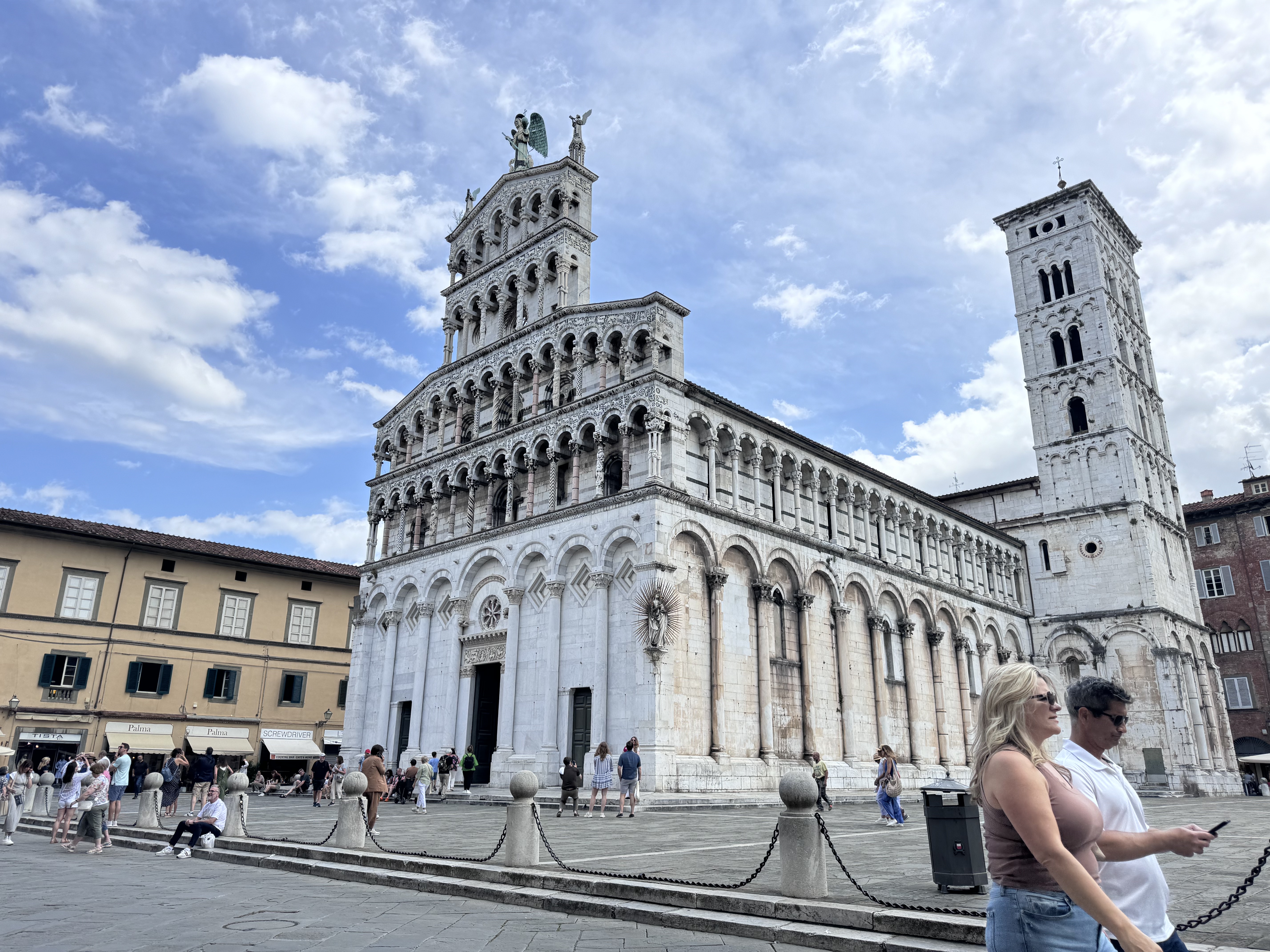 - Nos habían hablado muy bien de Lucca, decidimos desviarnos un poco de la ruta , comer y pasar unas horas en la ciudad. La verdad que también hay que visitarla, su Piazza dell’Anfitetro, sus calle, su muralla…. muy muy recomendable, aparcamos en el Corso Garibaldi, 2 Parking, en una plaza de PMR y nos salió gratis las horas que pasamos, este parking está justo al lado de la entrada a la muralla (algo muy chula ya que vas por su interior).