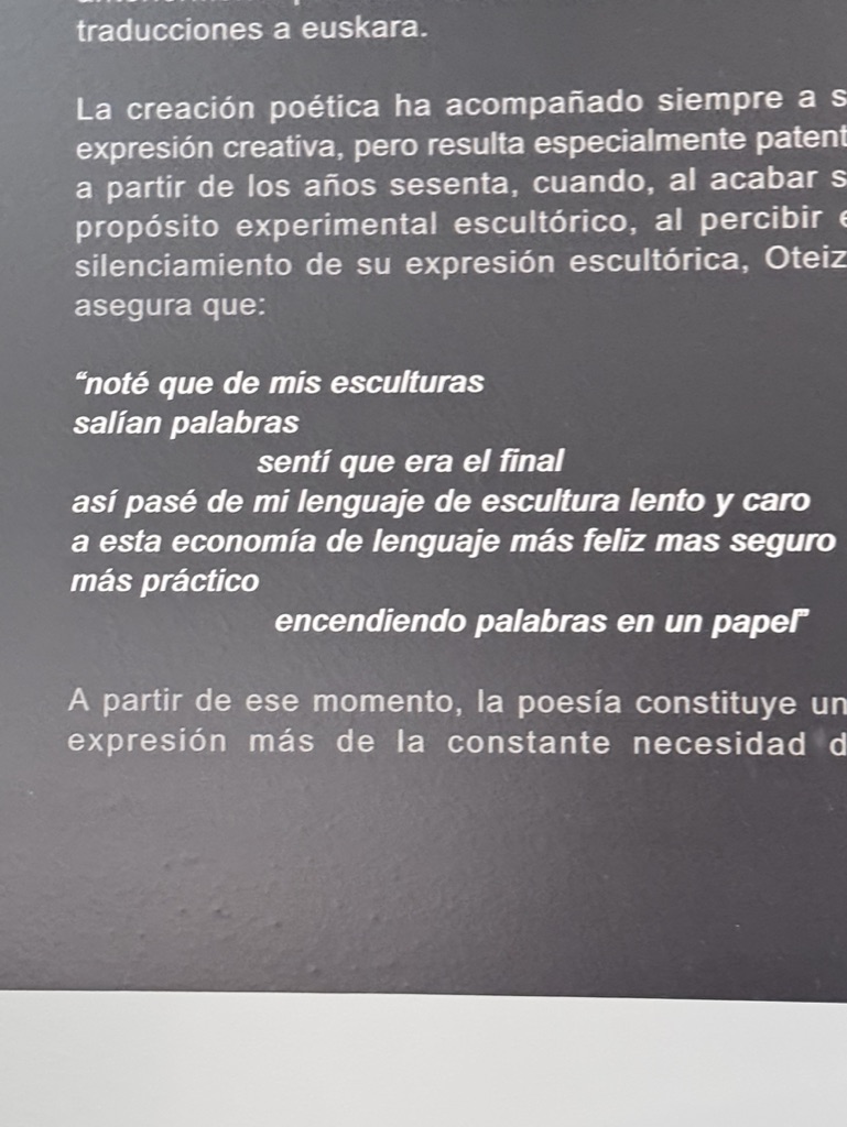 Tenía muchas ganas de conocer este museo, ya que Oteiza, aunque quizá no sea tan reconocido como otros artistas, posee una obra fascinante que, conforme la vas descubriendo, despierta el deseo de profundizar más en ella.