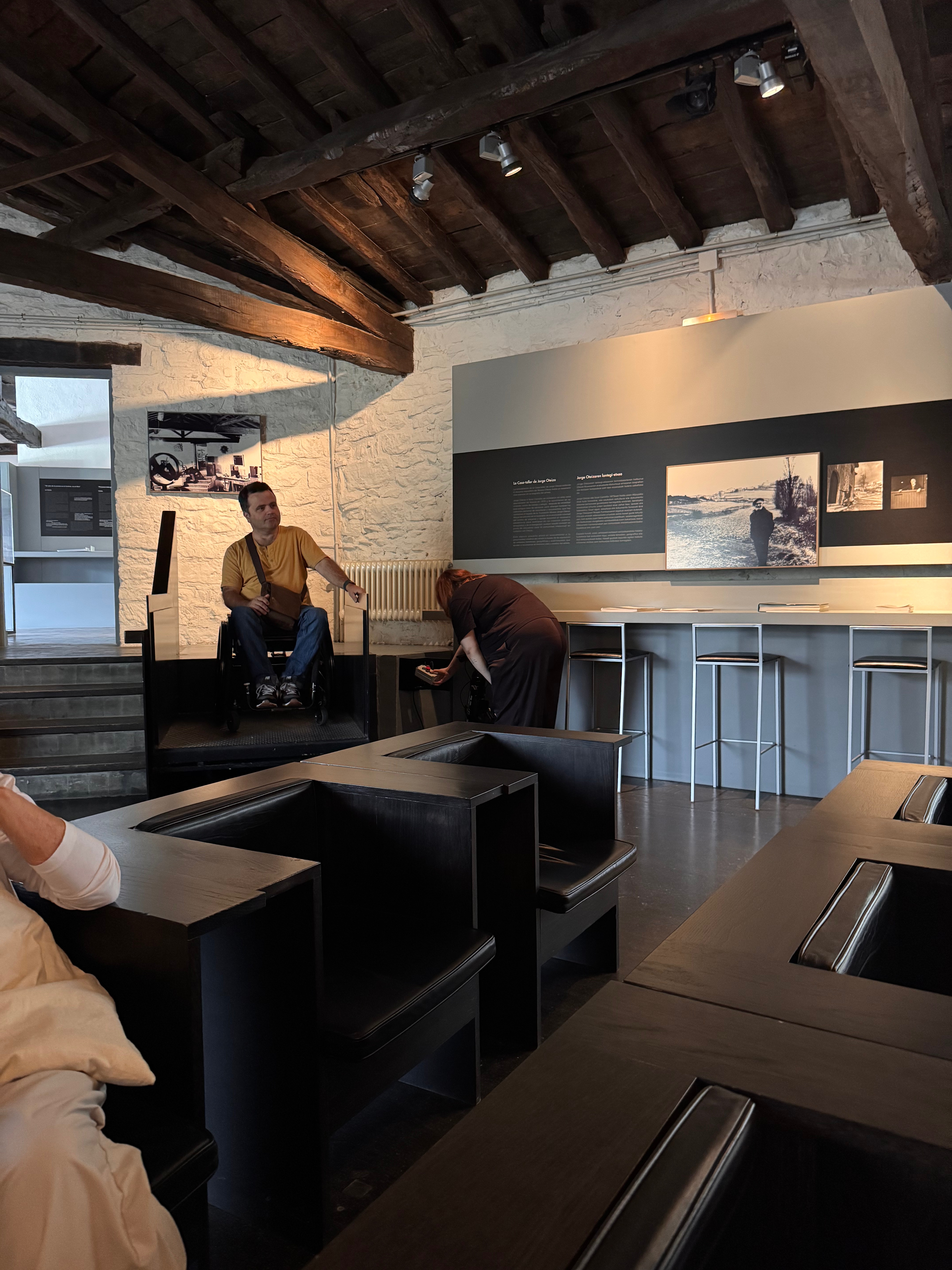 Como único inconveniente, destaco el recorrido que hay que realizar para desplazarse entre el museo principal y la vivienda de la familia Oteiza. El resto de las instalaciones bajo mi punto de vista cumplen perfectamente con los estándares de accesibilidad.