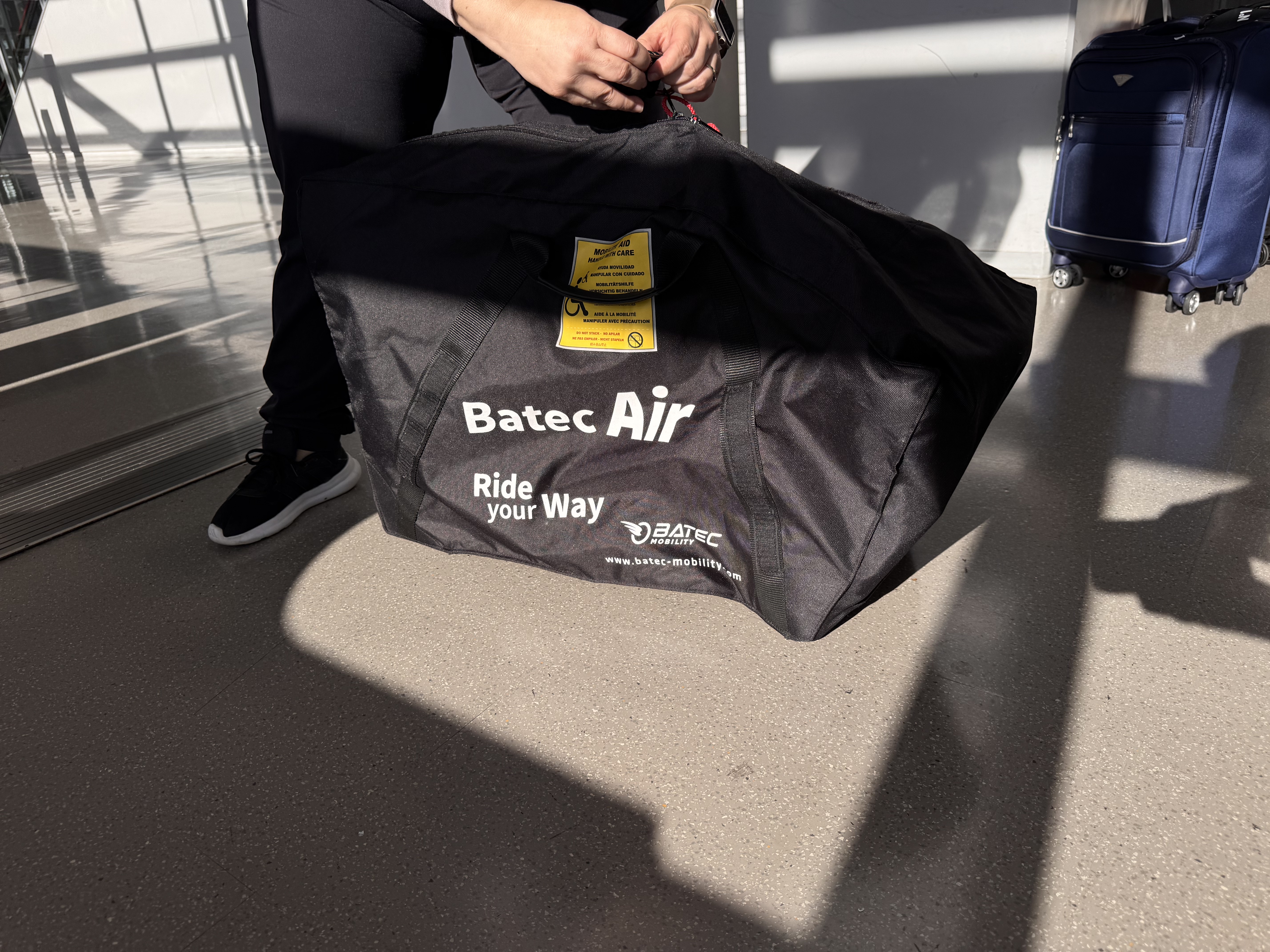- Bolsa de transporte: Buena idea, pero se nota sencilla y poco reforzada. Debería proteger mejor elementos como el disco de freno, la luz o el manillar, que quedan muy expuestos a golpes. Un sistema inflable manualmente para proteger las zonas más delicadas podría ser ideal a la hora de viajar. Además, el precio de 50 € tras gastar casi 4.800 € en la silla no me parece lógico. Esta bolsa debería venir incluida con la Batec Air de serie y existir una «PRO» si quieres bien reforzada para transporte.