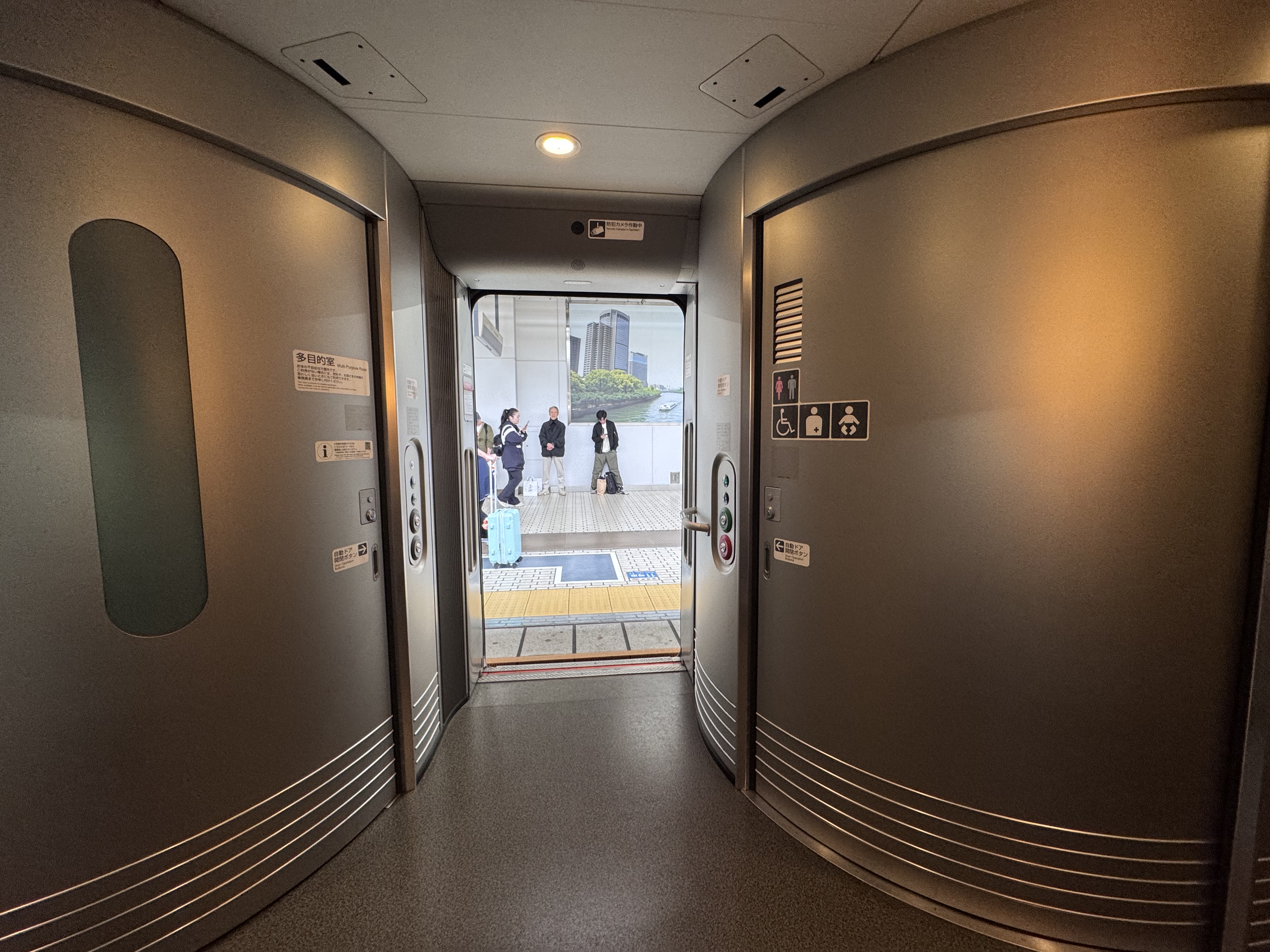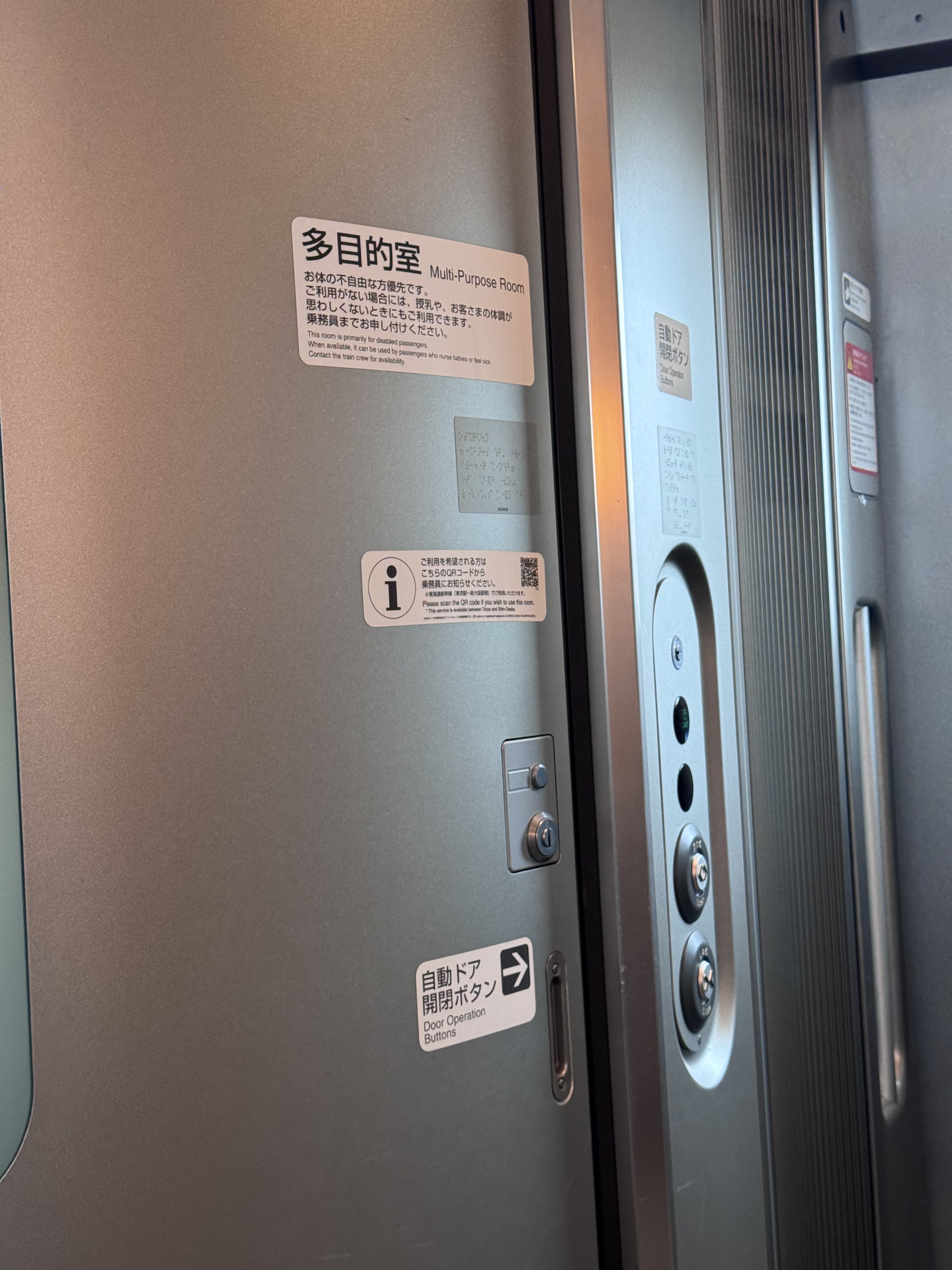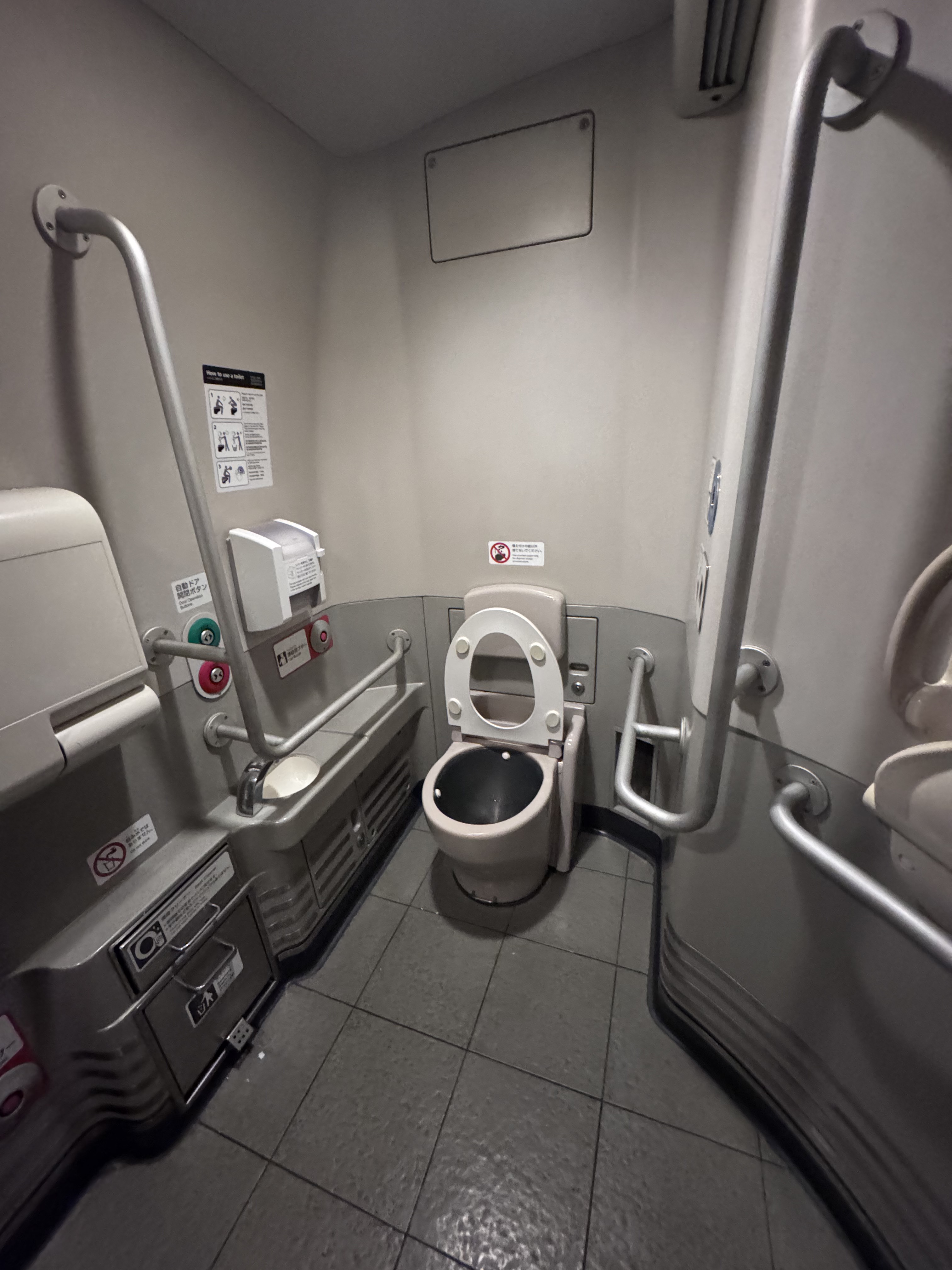 El tren va muy fino y apenas se nota que está yendo a esas velocIdades, justo al lado de nuestro vagón estaba el baño adaptado y ¡ojo! la sala adaptada lista para ser usada por personas enfermas o si tienes necesidades para tumbarte etc, esta sala hay que avisar a los operarios del tren para que te la abran en caso de necesidad, algo alucinante y nunca había visto en un tren.