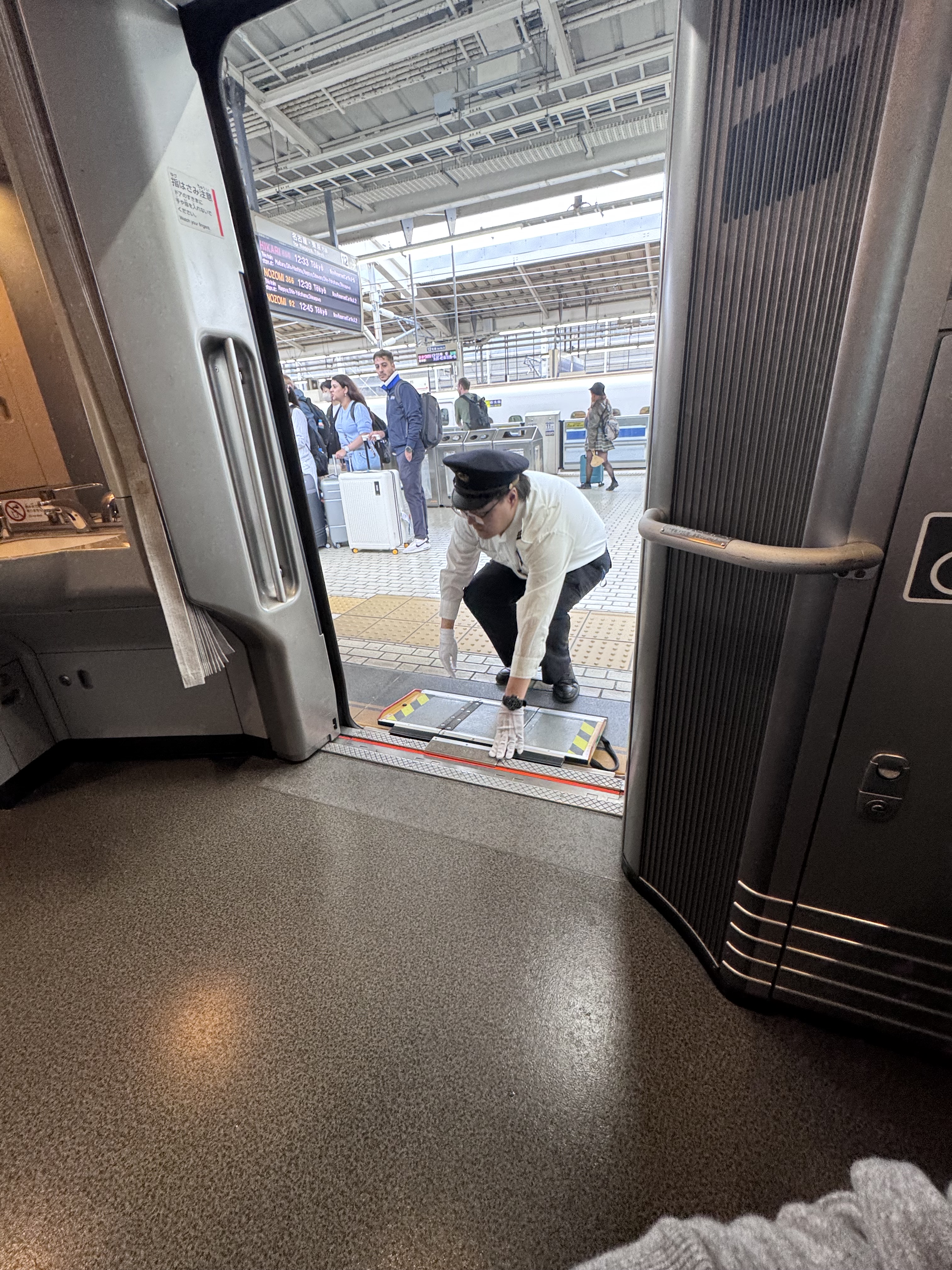 Qué deciros, una gozada de experiencia, tanto en el trato del personal como en el tren y los tiempos de tránsito. Creo que es el medio de transporte lógico para moverse por Japón si vas de turismo y te mueves por las ciudades más conocidas del País. Si le sumas que tu silla y equipamiento van contigo, todo se hace más ameno y relajante.